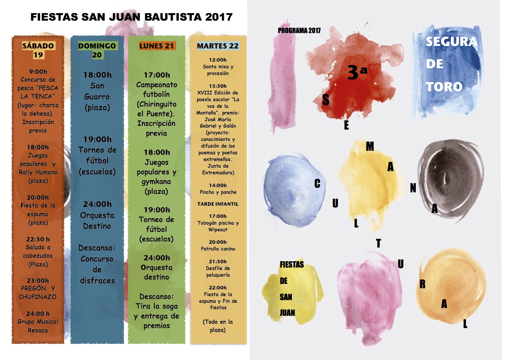 Programa Semana Cultural y fiestas de San Juan 2017 10 agosto 2017 Galería imágenes Documentos DI´PTICO SEMAN CULTURAL Y FIESTAS SAN JUAN.pdf (pdf 1,7 MB)